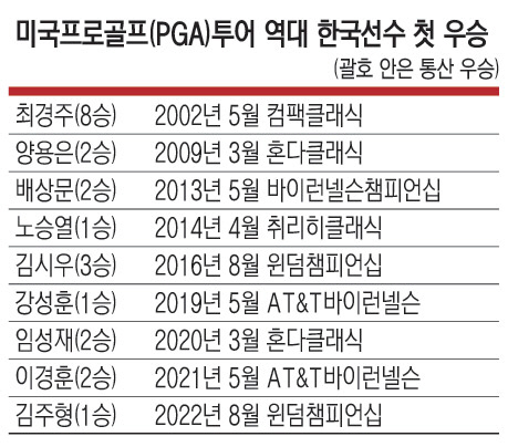 PGA투어 역사상 대회 중에 쿼드러플 보기를 범하고도 우승한 건 1983년 휴스턴오픈의 데이비드 그레이엄(호주), 2003년 와코비아챔피언십의 데이비드 톰스, 2009년 투어챔피언십의 필 미켈슨(이상 미국), 2016년 혼다클래식의 애덤 스콧(호주)에 이어 김주형이 5번째다.