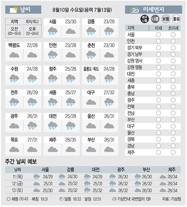 <날씨이야기>8월10일 수요일(음력 7월13일)