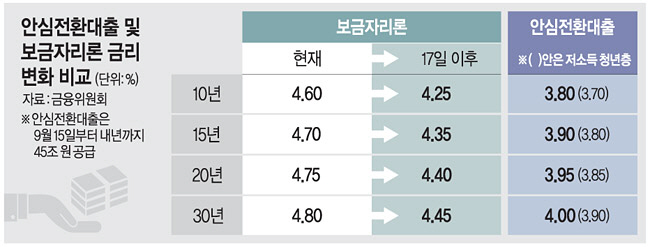 10일 금융위원회는 안심전환대출 세부 내용을 발표하면서 추진 배경으로 서민·취약계층의 금융 부담을 들었다. 지난 1년간 한국은행이 기준금리를 1.75%포인트 올리면서 변동금리 상품을 이용해 주택담보대출(주담대)을 받은 경우 이자 부담이 급격히 증가했다. 은행연합회에 따르면 지난해 7월 5대 시중은행(KB국민·신한·하나·우리·NH농협)의 변동형 주담대 금리는 2.39~3.17% 구간에 형성됐지만 올해 7월 현재는 3.85~4.22% 사이로 1%포인트 넘게 올랐다. 일부 저신용자를 대상으로는 6.1%대 주담대가 출시되기도 했다. 하반기 기준금리 인상분이 더해지면 서민·취약층 부담은 급격히 악화한다.