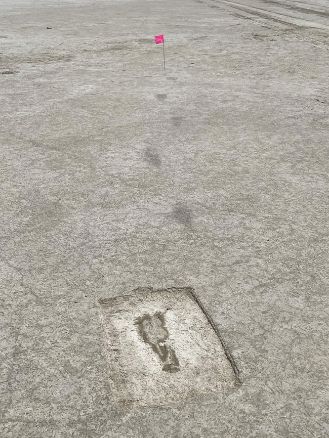 11일 공개된 미국 유타주 그레이트 솔트레이크 사막에서 발견된 빙하 시대의 발자국 사진. 고고학자들은 지난 7월 18일 발굴 현장에서 총 88개의 인간 발자국을 발견했는데, 이 발자국들은 1만2000여 년 전에 찍힌 것으로 추정된다.