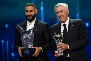 벤제마는 26일 오전 튀르키예 이스탄불에서 열린 2021∼2022시즌 UEFA 시상식에서 올해의 선수상 트로피를 품었다. 벤제마는 지난 시즌 레알 마드리드를 스페인 프리메라리가와 UEFA 챔피언스리그 우승으로 이끌었다. 벤제마는 27골과 12어시스트를 올려 득점 1위와 도움 2위, 공격포인트 1위를 차지했다. 또 챔피언스리그에선 15골로 득점왕에 올랐다.