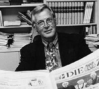 지난 22일 92세를 일기로 타계한 디 차이트의 원로 저널리스트 테오 좀머 추모 열기가 뜨겁다. 독일 언론들은 좀머가 19세 때인 1949년 지역신문 렘스 차이퉁에서 기자생활을 시작했다는 점을 들어 “서독(1949∼1990)과 함께 출발한 언론인”으로 부르고 있다. 그는 1958년 디 차이트에 합류한 뒤 유럽의 외교·안보에 관해 기사를 쓰며 외교장관 한스디트리히 겐셔, 총리 헬무트 슈미트 등과 교류해 “전후 유럽에서 가장 영향력이 큰 저널리스트”로 통했다. 좀머는 디 차이트에서 기자·편집장(1973∼1992)·공동발행인(1993∼2000)을 거쳐 대기자로서 세상을 떠날 때까지 논평을 썼다. 총 64년을 디 차이트에서 보내 좀머 스스로 “디 차이트가 내 인생”이라고 말했을 정도다.