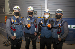 스마트 안전 시스템은 IoT 센서가 장착된 스마트 안전장구 3종(안전모·안전고리·안전벨트 센서)과 비콘 센서, 작업자 전용 앱, 관제 플랫폼으로 구성됐다. 작업자가 설치 공정을 진행할 때 안전모 턱끈, 안전고리 체결 여부를 자동으로 인식하고 미체결 시 이를 작업자와 주위에 알려 위험을 사전에 방지할 수 있다.