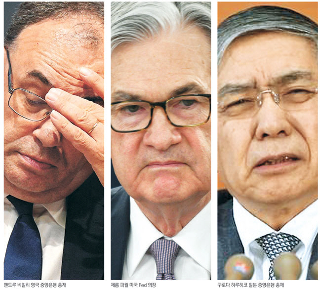 ◇모순 아니라는 일본 = 영국이나 미국과 달리 금융 완화 정책(단기 금리 -0.1% 동결)을 유지하고 있는 일본 중앙은행도 모순에서 자유롭지 않다. 특히 일본의 모순은 엔저를 막기 위해 시장에 개입하는 동시에 10년물 국채금리를 0.25%로 묶어두는 ‘수익률곡선제어’ 정책을 유지하는 데서 발생한다. 엔저를 막기 위해 달러를 팔고 엔을 사는 개입을 하면 통상 시중 엔화가 감소하며 엔화 표시 채권 금리가 오르는 흐름이 조장된다. 이는 일본 중앙은행이 국채를 대량 매입해 시장에 엔화를 풀고 초저금리를 유지하고 있는 것과는 반대 상황을 유도하는 행위로 볼 수 있다.