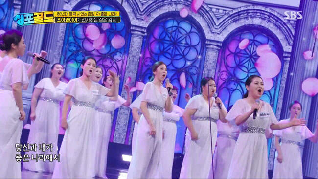참가자들의 면면도 다르다. 유명 연예인이 다수 참여했던 기존 합창 프로그램과 달리 은퇴한 회사원, 경력 단절 여성, 아르바이트 학생 등 다양한 사연을 가진 비(非)연예인들이 주인공이다. ‘좋은 나라’를 부른 조아콰이어의 경우 부산에 사는 30∼50대 육아맘들의 모임이다. 그들이 무대를 꾸미기 전 “자녀를 키우는 엄마들로서 아이들이 보다 따뜻하고 아름다운 좋은 나라를 이뤄갔으면 좋겠다는 염원을 담아 노래하겠다”고 밝힌 포부에 고개가 끄덕여지는 이유다.