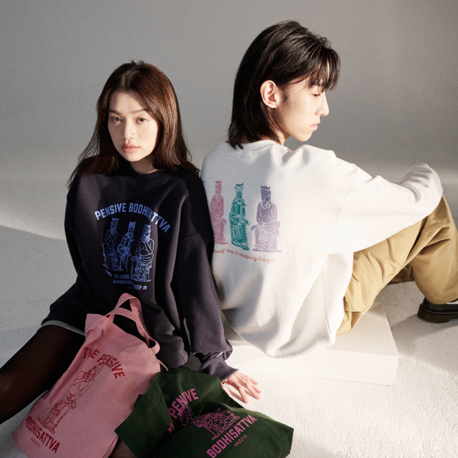 LF는 캐주얼 브랜드인 ‘헤지스(HAZZYS)’와 국립박물관문화재단의 상품 브랜드 ‘뮷즈(MU:DS)’를 협업해 반가사유상을 주제로 한 캡슐 컬렉션(사진)을 선보인다고 14일 밝혔다.