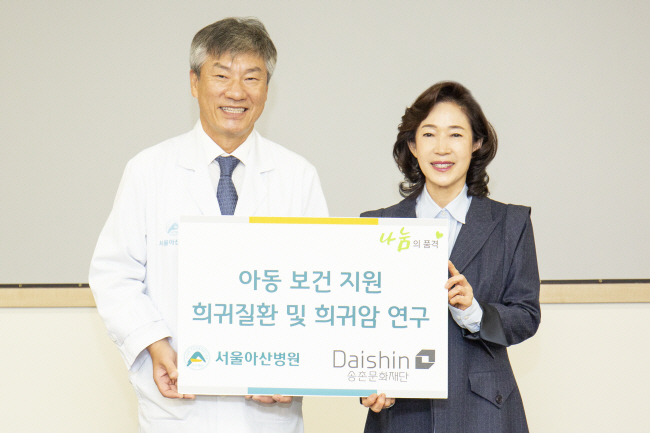 대신증권이 사회공헌활동으로 서울아산병원에 아동보건 지원사업을 위한 후원금을 전달했다. 기금은 신생아 환아와 중증 어린이 환자 치료와 희귀질환 및 희귀암 연구에 활용될 예정이다.