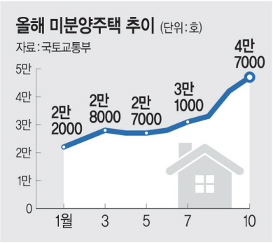 30일 국토교통부가 공개한 ‘2022년 10월 주택동향’에 따르면 10월 말 기준 전국의 미분양 주택은 총 4만7217호로 전월보다 13.5%(5613호) 증가했다. 지방 미분양 주택은 전월 대비 17.2%(5814호) 늘어난 3만9605호였다. 서울의 미분양 주택은 866호로 20.4%(147호) 늘었다. 지난해 말 54호와 비교하면 16배 넘게 증가한 수치다.