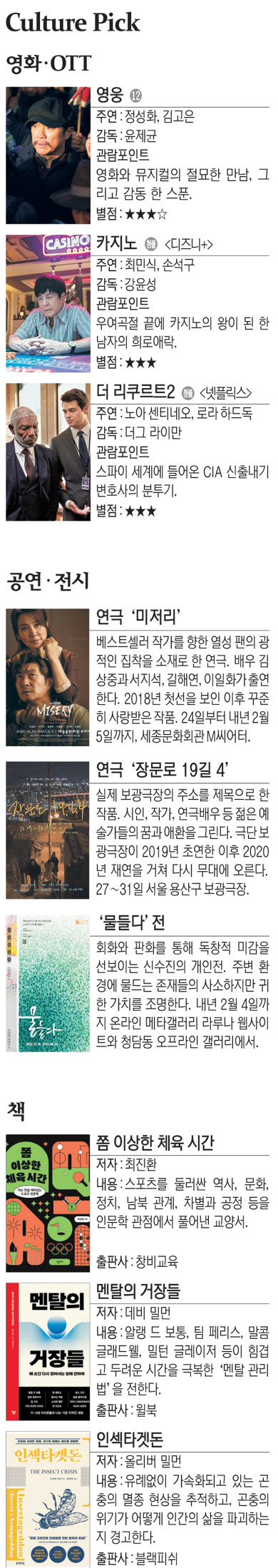 영화 ‘휴민트’ 등[Culture Pick]