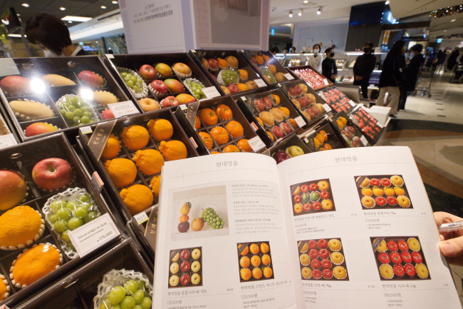 설 명절(22일)을 앞두고 고향을 찾는 귀성객이 늘어날 것으로 예상되는 가운데, 2일 서울 강남구 현대백화점 압구정본점에 설 선물 세트가 진열돼 있다.
