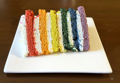 다양한 케이크를 파는 전문점이다. 무지개떡을 연상시키는 시그니처, 이른바 ‘레인보우 케이크’가 눈길을 끈다. 과연 이름처럼 7가지 색으로 물들인 빵 사이 사이에 고소하고 달콤한 크림치즈가 들었다. 겉면도 우유의 풍미가 진하게 배어있는 크림치즈로 감쌌다. 생크림과 레몬 크림 등을 넣은 버전도 있다. 인천 남동구 남동대로 217. 9000원.