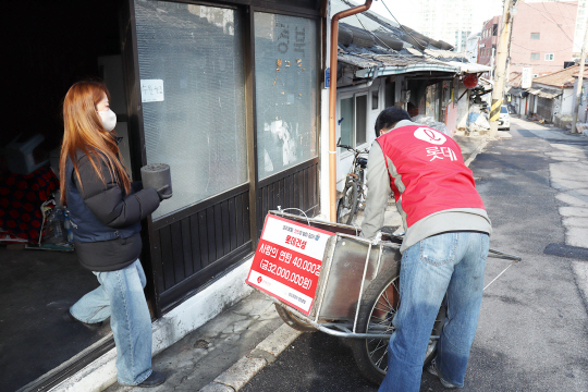 부동산 경기 위축 등으로 힘겨운 시기를 보내고 있는 건설업계도 온정 나누기에 동참한다. 롯데건설은 서울연탄은행과 부산연탄은행에 각 4만 장씩 총 8만 장의 연탄을 기부(사진)했다. 롯데건설은 독거노인과 복지 사각지대에 있는 이웃 등 에너지 취약 가구의 겨울철 난방비 부담을 덜어주기 위해 연탄 나눔을 진행했다.