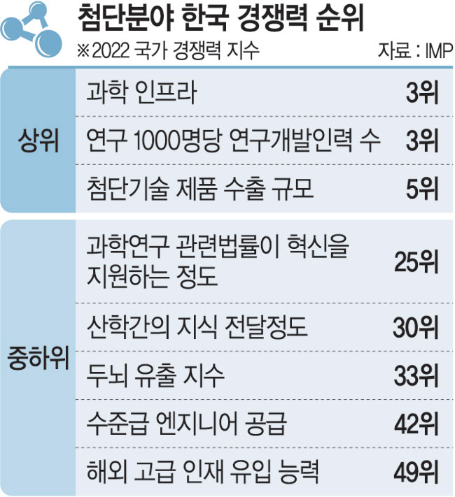 정부는‘항공·우주미래모빌리티’ ‘바이오헬스’ ‘첨단부품·소재’ ‘디지털’ ‘환경·에너지’ 등 5개 분야를 신성장 동력을 발굴할 수 있는 5대 핵심 첨단분야로 선정했다. 정부는 관련 분야의 인재양성 정책을 추진하기 위해 국가 인재양성 기본법 등 인재양성 3법 제정을 추진 중이다. 또 학생의 역량강화 기여도를 측정하는 ‘학생성공지표’(가칭)를 개발해 학생 중심 맞춤형 성과관리도 추진하고, 데이터 기반 인재관리 및 활용을 위해 관련 시스템도 구축한다.