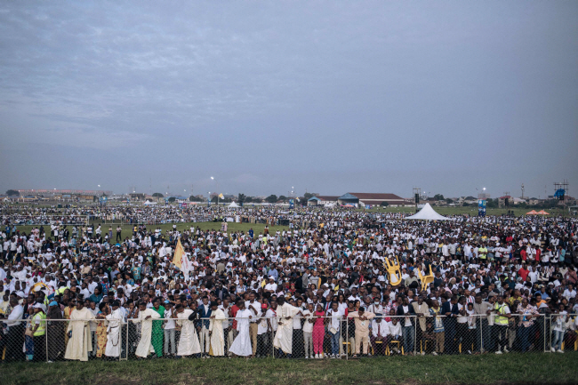 교황은 이날 수도 킨샤사 은돌로 공항에서 진행한 미사(위 사진)에서 “용서를 통해 우리는 증오와 회한, 모든 억울함과 적개심을 씻을 수 있다”며 이같이 말했다. 이어 다이아몬드 등 주요 광물 개발권을 놓고 폭력 사태가 이어지고 있는 민주콩고 동부 지역 상황을 언급하며 “용서가 나쁜 일이 일어나지 않은 척하는 걸 의미하진 않는다”고 꼬집었다. 민주콩고 분쟁 해결을 위한 국제사회 노력을 당부한 발언으로 풀이된다.
