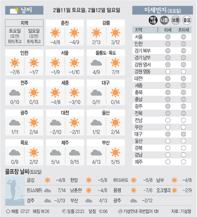 [날씨이야기] 2월11일 토요일, 2월12일 일요일