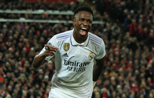 레알 마드리드는 22일 오전(한국시간) 영국 리버풀의 안필드에서 열린 유럽축구연맹(UEFA) 챔피언스리그 16강 1차전에서 리버풀을 5-2로 눌렀다. 비니시우스 주니오르(사진)와 카림 벤제마가 2득점과 1도움씩, 에데르 밀리탕이 1득점을 넣었다.