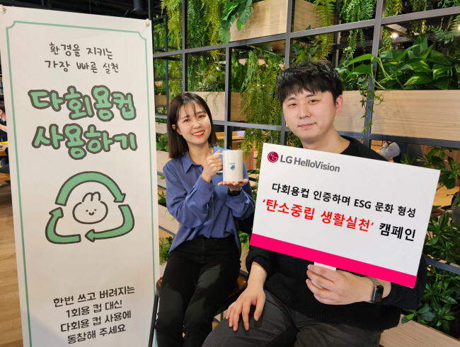 LG헬로비전은 환경·사회·지배구조(ESG) 기업 문화를 조성하기 위해 지난 7일부터 2주 동안 임직원과 함께하는 ‘탄소 중립 생활실천’ 캠페인(사진)을 진행했다고 23일 밝혔다.