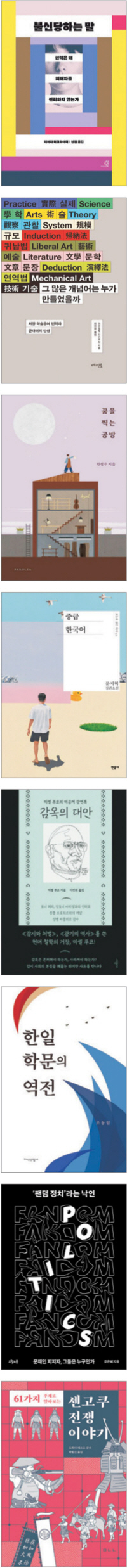 조은혜 지음. ‘팬덤 정치’에 대한 비판적 관점에 의문을 제기한다. 지지자인 ‘시민’을 근거 없이 ‘팬’과 등치해 시민의 정치 참여에 대한 무분별한 낙인을 초래한다는 것. 기존 정당 정치의 문제를 은폐하는 프레임으로 활용하고 있다고 주장한다. 시민 정치 참여의 맥락을 재구성한다. 오월의봄. 216쪽, 1만6000원.