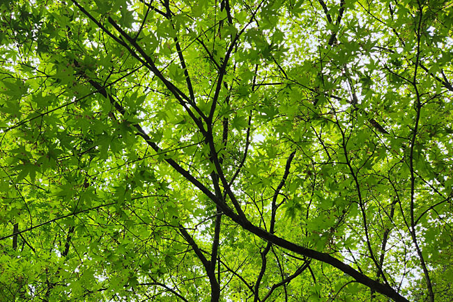 나무는 때맞춰 소리 없이 초록으로 바뀌고 있다.