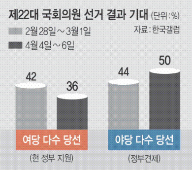 “여당 우세” 36% “야당 우세” 50%