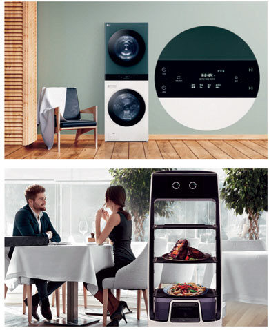 LG전자가 편리성을 대폭 강화한 일체형 세탁건조기 ‘트롬 워시타워’(위 사진) 신제품과 LG 클로이 서브봇(LG CLOi ServeBot·아래)을 출시한다고 11일 밝혔다. 트롬 워시타워 신제품은 중앙의 조작부인 ‘퀵 컨트롤(Quick Control)’에 4.3인치 풀터치 LCD 디스플레이를 적용해 여러 개의 버튼으로 조작하던 기존 방식보다 편리하도록 했다. 워시타워 중앙의 조작부를 분리형 제품보다 약 100㎜ 높게 설계해 사용자가 허리를 숙이거나 손을 멀리 뻗지 않아도 조작할 수 있도록 했다. 신제품 가격은 출하가 기준으로 스팀 기능이 포함된 모델은 429만 원, 스팀 기능이 포함되지 않은 모델은 399만 원.