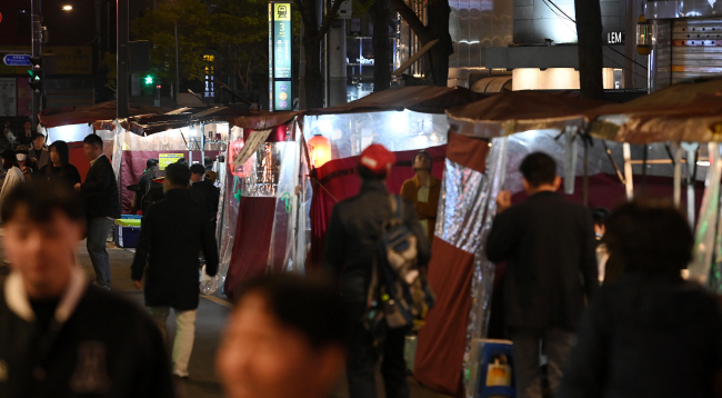 밤을 밝히는 포장마차의 불빛이 어색하지 않고