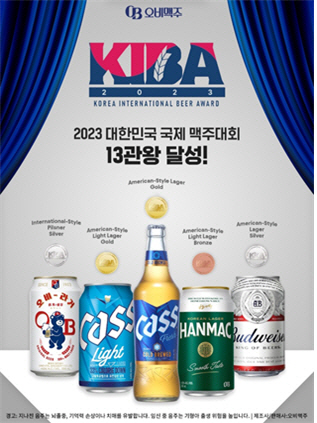 오비맥주가 ‘대한민국 국제 맥주대회(Korea International Beer Award·KIBA) 2023’에서 13관왕의 영예를 안았다. 시상식은 지난 7일 서울 코엑스에서 열렸다.