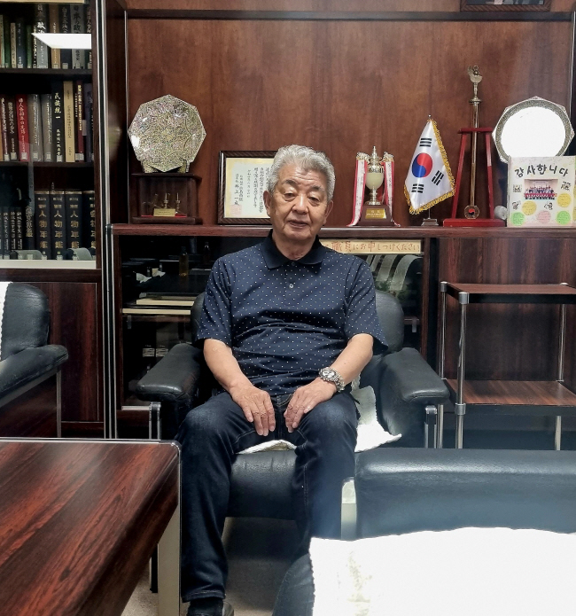 권준오(사진·73) 재일본대한민국민단(민단) 히로시마(廣島)본부 원폭피해자대책특별위원회 부위원장은 17일 일본 히로시마 동구 민단 2층 사무실에서 문화일보 기자와 만나 19∼21일 히로시마에서 열리는 주요 7개국(G7) 정상회의를 계기로 일본을 방문하는 윤석열 대통령과 함께 기시다 후미오(岸田文雄) 일본 총리가 히로시마 평화기념공원에 있는 ‘한국인 원자폭탄 희생자 위령비’를 참배하는 데 대해 이같이 밝혔다. 권 부위원장은 하던 말을 잠시 멈추고 스마트폰으로 몇 가지 단어를 검색해본 다음 ‘사의’를 골라 기자에게 보여줬다. 그는 “사의라는 것이 한국에서 요구하는 ‘사죄’에 비해서는 약하다”면서도 “다만 그 첫걸음을 떼는 것이 중요하다”고 했다.