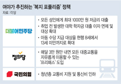 민주당은 기초연금 외에도 포퓰리즘적 성격이 다분한 정책을 추진하고 있다. 우선 성인 누구나 최대 20년 기한으로 1000만 원을 저금리로 대출받을 수 있게 하는 방안을 검토하고 있다.