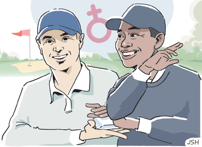 그때였다. 우즈는 티샷을 마치고 걸어가던 토머스에게 무심한 표정으로 갑자기 다가와 왼손으로 무언가를 쓱 건넸다. 토머스는 처음엔 어리둥절한 모습을 보였으나 우즈가 건넨 물건을 확인한 뒤 화들짝 놀라며 바닥으로 던졌다. 두 사람은 서로 부둥켜안고 낄낄거리며 페어웨이를 걸었다.
