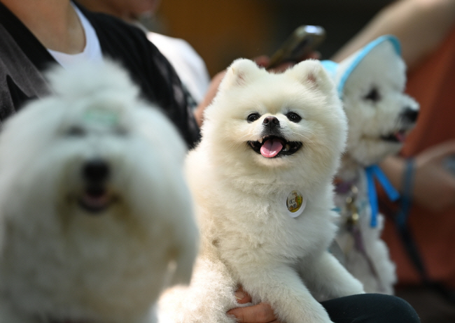 11일 서울 서초구 매헌시민의숲에서 열린 반려견 놀이터 개장식에 많은 견주와 강아지가 참석했다. 반려견 놀이터는 13일부터 1개월간 오전 10시∼오후 6시 시범 운영한다.