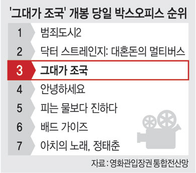 경찰이 조국 전 법무부 장관이 출연한 다큐멘터리 영화 ‘그대가 조국’의 박스오피스 순위가 조작된 정황을 포착하고 수사에 나선 것으로 15일 확인됐다. 조 전 장관의 임명 과정을 다룬 이 영화는 지난해 5월 개봉 이후 관객 33만 명을 동원해 그해 독립 영화 중 최고의 흥행기록을 세웠다. 야권과 지지자들은 조 전 장관 일가의 입시 비리 수사와 사법부 판결이 잘못됐다는 여론이 반영됐다고 두둔했지만 “조작된 흥행일 수 있다”는 지적이 커질 전망이다.