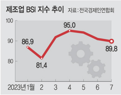 그나마 내수 회복에서 온기를 기대할 수 있을 전망이다. 전경련 조사에서 내수 중심의 비제조업 BSI는 14개월 만에 반등에 성공한 것으로 나타났다. 휴가 시즌 특수가 기대되는 여가·숙박 및 외식(128.6) 등이 호조 전망을 보인 가운데 건설(93.5)만 기준선에 미달했다. 정부도 내수에 희망을 걸고 있다. 기획재정부는 최근 펴낸 ‘6월 최근경제동향(그린북)’에서 “수출·제조업 중심으로 경기둔화가 이어지고 있으나 완만한 내수 회복세 등으로 하방 위험이 다소 완화되는 모습”이라고 밝혔다. 재계 관계자는 “최저임금 수준을 합리적으로 조정하는 한편, 노란봉투법 입법 논의를 중단해 위축된 기업 심리를 높일 필요가 있다”고 말했다.