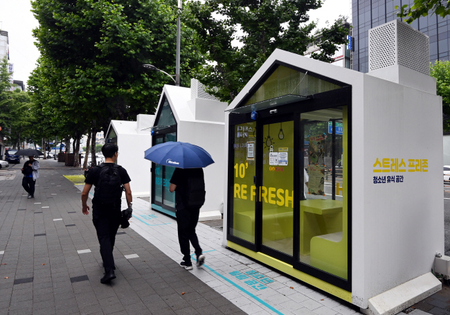 지난 4월부터 서울 강남구 대치동 학원가 보행로에는 집 모양의 가건물이 나타났다. 약 한 평 크기의 내부가 훤히 들여다보이는 이 건물은 구에서 학생들에게 잠깐의 시간 동안 건강하게 스트레스를 해소할 수 있는 공간을 마련해 주겠다며 만든 ‘스트레스 프리존’이다.