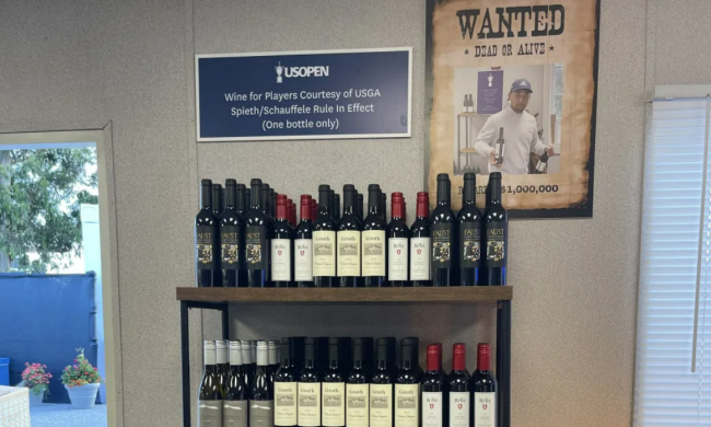 US오픈은 지난달 19일(한국시간) 막을 내린 후 선수들에게 와인을 무료로 1병씩 제공했다. 선수들이 여러 종류의 와인 중에서 자신이 선호하는 1병을 자유롭게 가져가는 방식으로 운영됐다. 와인이 진열된 바로 위 표지판엔 ‘선수들을 위한 와인은 미국골프협회(USGA)에서 제공합니다. 스피스·쇼플리 규정이 적용됩니다(오직 1병만)’라는 글이 적혀 있었다.
