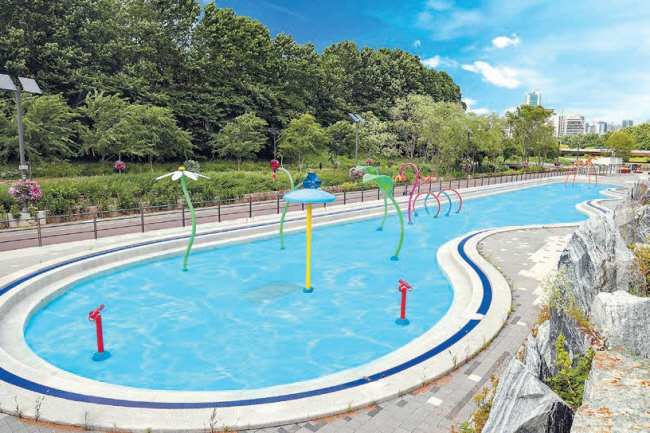 어린이풀 근처는 파라솔, 차양막, 그늘막 등이 설치돼 가족이 함께 재충전할 수 있다. 한쪽에는 터널분수, 샤워실, 탈의실, 화장실, 매점 등의 편의시설도 마련돼 있다. 수영장은 다음 달 27일까지 매일 운영된다.
