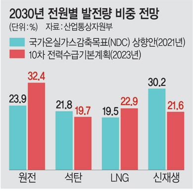 정부가 신규원전 도입 등으로 비용 효율적인 전원(電源)믹스를 구성한다. 이를 통해 경기 용인시 시스템반도체 첨단산업단지 조성 같은 전력수급의 급격한 변화에 대응키로 했다. 또 전력산업기반기금(전력기금)은 신재생에너지에 편중되지 않도록 하고 원전생태계 강화, 취약계층 지원, 에너지 신산업 연구·개발(R&D) 등 기금 목적에 맞게 운용키로 했다.