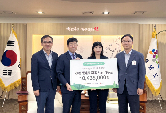 카카오게임즈는 지난달 자사 임직원 참여형 나눔 프로젝트 ‘다가치 나눔파티’를 진행했으며 조성된 기부금 약 1044만 원을 지난 4월 큰 규모의 산불 피해를 입은 ‘충남 지역 산림 회복’을 위해 쓰기로 결정했다. 해당 기부금은 임직원들이 모금한 기부금에 회사 매칭 기부금이 추가되는 방식으로 모였으며 충남 적십자사로 전달돼 피해 지역의 나무 심기 등에 쓰일 예정이다.