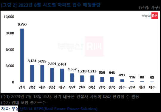 지방은 △경남(3124가구) △충남(2591가구) △대구(2461가구) 등 3개 지역 입주 물량이 지방 전체의 절반 이상을 차지한다.