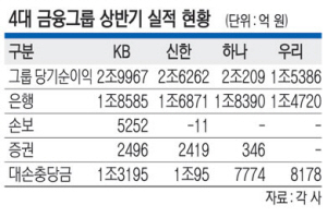 상반기 순익 9조넘어 역대 최대 KB 12.2%·하나 16.6% 증가 신한 2.1%·우리 12.6% 감소