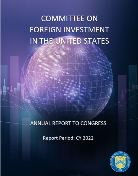 미국 재무부가 31일(현지시간) 발표한 연례 CFIUS 의회보고서(사진)에 따르면 CFIUS는 2020∼2022년 전 세계에서 총 745건의 거래 신고를 접수했다. CFIUS는 외국인의 미국기업 인수합병 등 대미 투자가 국가 안보에 미치는 영향을 심사해 안보 우려가 있다고 판단되면 기업이 그 문제를 해소한다는 조건으로 승인하거나 거래 자체를 불허할 수 있다. 2020∼2022년 접수된 총 745건을 인수기업의 출신 국가별로 보면 중국이 97건으로 가장 많았다. 이어 일본 60건, 싱가포르 60건, 캐나다 56건, 프랑스 38건, 케이맨 제도 33건, 한국 29건 순이었다. 한국은 2020년 2건에 불과했으나 2021년 13건, 2022년 14건으로 매년 증가세를 보였다. 산업별로는 29건 중 제조업 12건, 금융·정보·서비스업 12건, 광업·공공사업·건설업 3건, 도매·소매·수송업 2건으로 집계됐다.