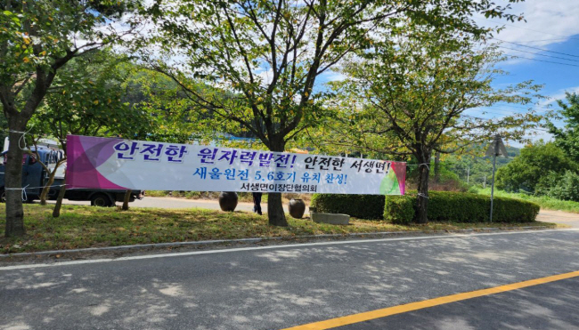 24일 한국수력원자력 등에 따르면 울산 울주군 서생면 이장단협의회는 이달 중순부터 지역 내 주민들을 대상으로 가칭 ‘새울원전 5·6호기’ 유치 서명운동에 나섰다. 지역 곳곳에 원전 유치 현수막(사진)도 내걸고 원전과의 상생을 주장하고 있다. 정부가 현재 수립 중인 제11차 전력수급기본계획에 신규 원전 건설 계획이 담길 것으로 알려지자 주민들이 앞장서 원전을 지어 달라고 요구하고 나선 것이다. 현재 이곳에 건설 중인 새울원전 3·4호기도 지역 주민 자율 유치로 추진된 바 있다.