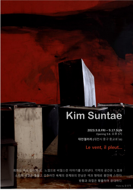 지난 8일 대전갤러리(대전 중구 중교로)에서 막을 올린 전시회는 ‘Le vent, il pleut…’(바람 불고, 비가 온다)라는 제목으로 36점의 작품이 오는 17일까지 선보인다.