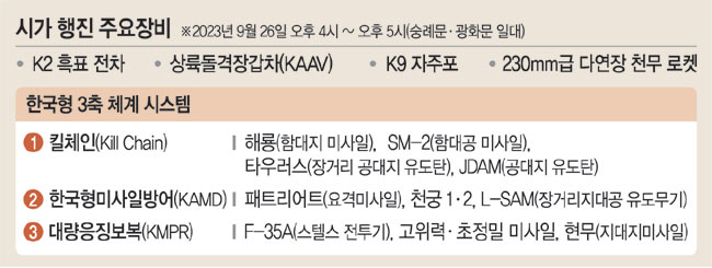 이날 오후 4시부터 오후 5시까지 숭례문에서 출발해 광화문 육조마당까지 세종대로 1.2㎞ 구간에서 열리는 시가행진에는 4600여 명의 한·미 도보부대 수도방위사령부 군사경찰단 MC(모터사이클) 기동대가 선두에 나선다. 시가행진에 참여하는 주한미군 부대는 미8군 예하 19지원사령부 병력이 주를 이룬다.
