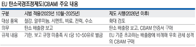 지난해 기준 한국의 대(對)EU 수출액 681억 달러 가운데 이 같은 내용의 CBAM 대상이 되는 품목의 수출액은 51억 달러로, 대EU 총수출액의 7.5%를 차지하는 것으로 집계됐다. 업종별로는 철강과 알루미늄 제품 등을 중심으로 타격이 클 것으로 분석됐다. 이정아 한국무역협회 수석연구원은 “한국 기업들이 탄소 중립 경영, 저탄소 공급망 재편 등 장기적인 탄소 경영 전략을 모색할 필요가 있다”고 밝혔다.