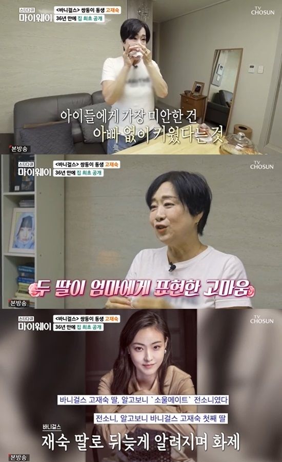 고재숙은 29일 TV조선 ‘스타다큐 마이웨이’에서 이혼 후 딸을 홀로 키웠다고 털어놨다. 첫째 딸은 배우 전소니, 둘째 딸은 싱어송라이터 전주니다. “아빠 없이 키워서 아이들에게 가장 미안하다. 이혼 후 더 책임감을 갖고 예쁘게 키우고 싶었다. 애 아빠 도움 하나도 받지 않고 키웠다”면서 “아이들이 ‘엄마 이혼은 창피한 게 아니다. 아빠 없이 키운 걸 죄스럽게 생각하지마’라고 하더라. 아이들이 성인이 된 후 내 생일 때 ‘우리를 건강하게, 예쁘게 낳아줘서 감사하다’고 해 뿌듯했다”며 울먹였다.