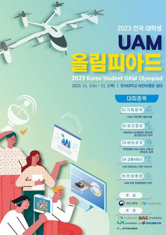 이번 대회는 신기술 및 미래모빌리티의 주역인 전국 대학생들이 도심항공교통분야에 대한 주제별 미션을 수행함으로써 ▲기체창작 ▲공간정보 ▲버티포트 ▲교통서비스 ▲전파환경분석 등 총 5개부문에서 팀별 성과물을 발표할 예정이다.