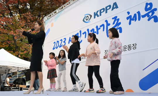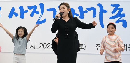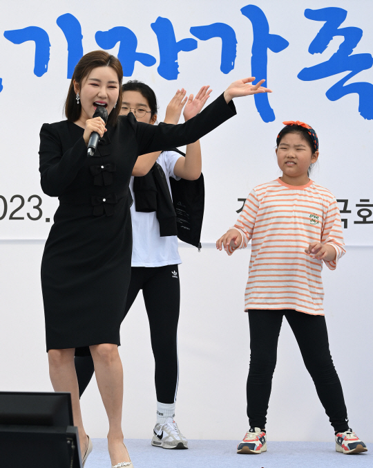 가수 송가인이 4일 오후 서울 여의도 국회 운동장에서 열린 한국사진기자협회 주최 ‘2023년 사진기자 가족 체육대회’에서 멋진 무대를 선보이고 있다. 사진=한국사진기자협회