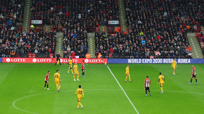 롯데그룹은 오는 27일까지 전 세계에서 가장 많은 팬을 보유한 축구 리그인 영국 프리미어리그(EPL) 경기장에 2030 부산세계박람회(엑스포)를 기원하는 광고(사진)를 선보인다고 6일 밝혔다. 이에 맞춰 경기장에 ‘WORLD EXPO 2030 BUSAN, KOREA’와 ‘HIP KOREA! BUSAN IS READY’ 등 부산엑스포 유치 기원 메시지를 자막으로 띄운다. 지난 5일(한국시간) 축구 국가대표 황희찬이 소속된 울버햄프턴 원더러스와 셰필드 유나이티드 경기를 시작으로 맨체스터 유나이티드, 리버풀, 에버턴 등 영국 프리미어리그 11개 경기에서 볼 수 있다. 롯데그룹은 “맨체스터 유나이티드, 리버풀은 영국 프리미어리그 팀 중에서도 인기가 높아 광고 효과가 클 것”이라고 설명했다.