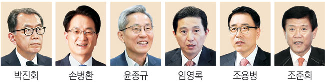 은행연합회 차기 회장 후보군 6명이 결정됐다. 후보 명단엔 박진회 전 한국씨티은행장, 손병환 전 NH금융지주 회장, 윤종규 KB금융지주 회장, 임영록 전 KB금융지주 회장, 조용병 전 신한금융지주 회장, 조준희 전 기업은행장(가나다순) 등 전·현직 금융지주 회장과 은행장 등이 대거 이름을 올렸다.